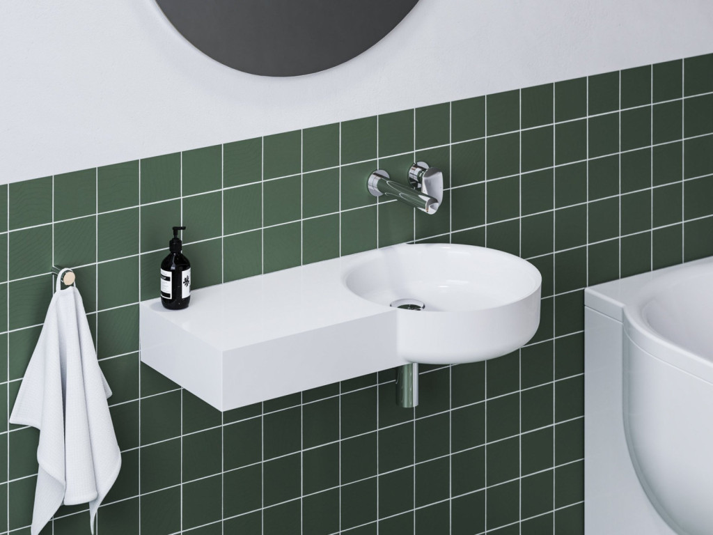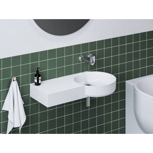 ARC 83/43 B mosdó, bal oldali pakolófelülettel. A mosdó túlfolyó nélkül készül, ezért kötelező fix mosdóleeresztőt használni, amely megakadályozza a víz túlcsordulását. A mosdó falba süllyesztett mosdócsapteleppel való kombináláshoz készült.