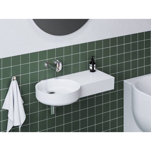 ARC 83/43 J mosdó, jobb oldali pakolófelülettel. A mosdó túlfolyó nélkül készül, ezért kötelező fix mosdóleeresztőt használni, amely megakadályozza a víz túlcsordulását. A mosdó falba süllyesztett mosdócsapteleppel való kombináláshoz készült.