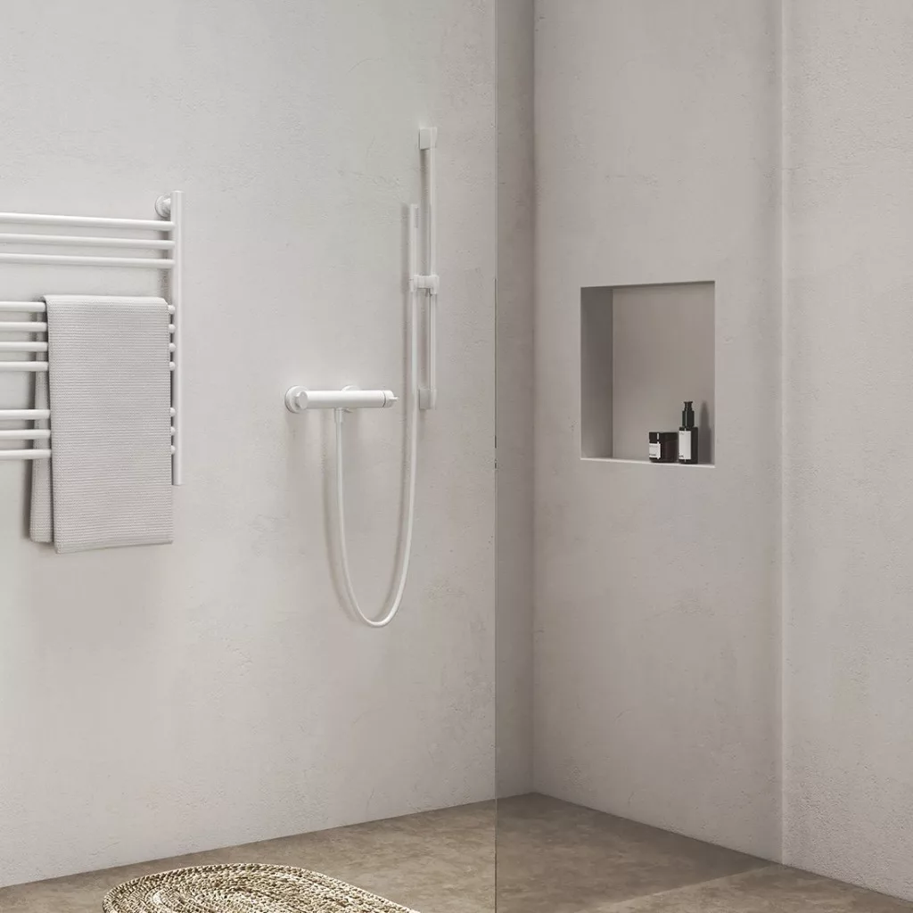 - OneHand: speciális csúszka - egész sárgaréz zuhanytartó csúszka rendszer egy kézzel. Csak nyomja meg a kart és mozgassa a zuhanyt bármilyen pozícióba.