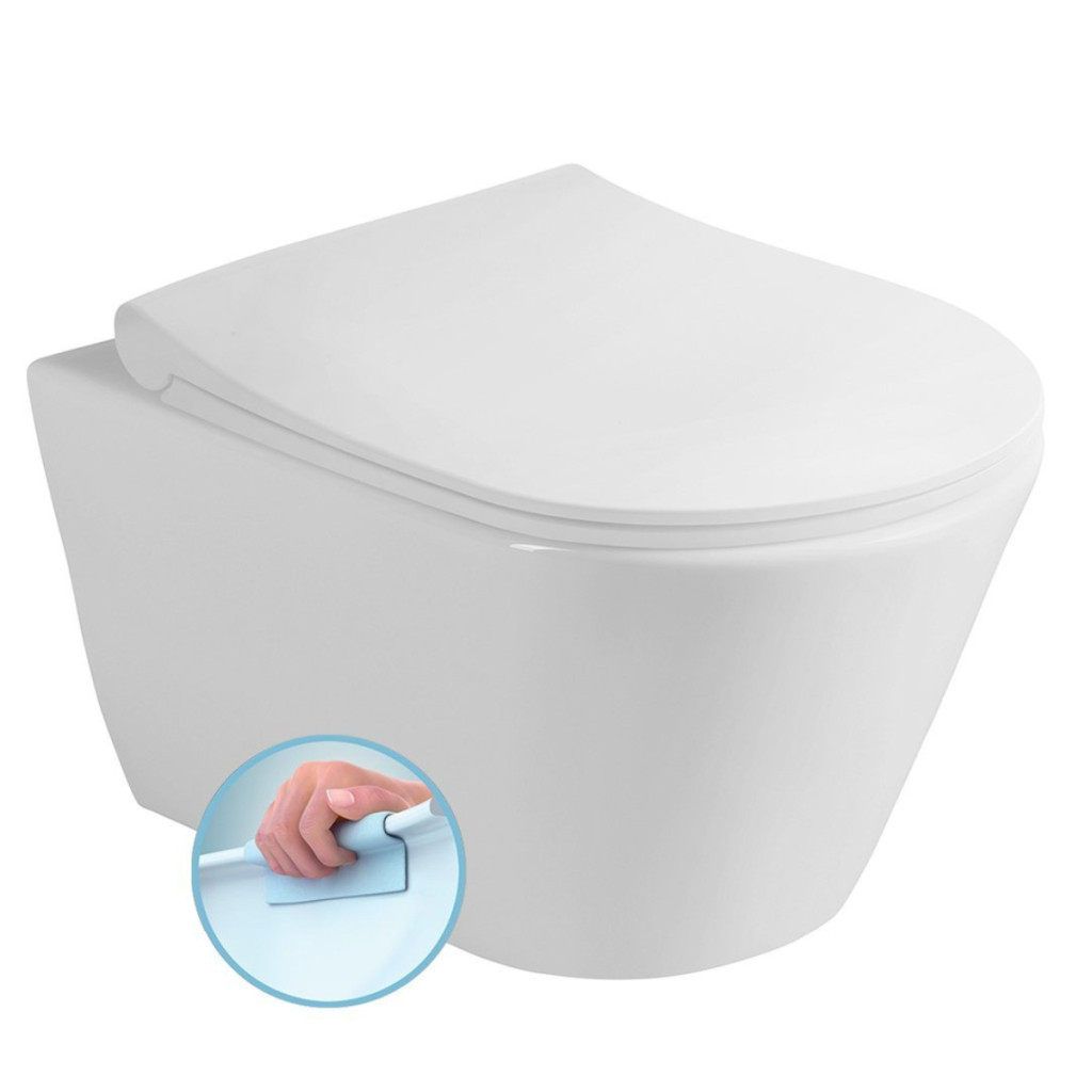 A perem nélküli – rimless – wc-k legfontosabb tulajdonsága, hogy nincsenek rajtuk elérhetetlen zugok, könnyen tisztántarthatók. A speciális kialakítású wc-csésze lehetővé teszi, hogy öblítéskor az örvényszerűen körbeáramló víz a wc teljes belső felületét tisztává varázsolja, kifröccsenés nélkül. Mind a fali, mind pedig az álló WC-k rejtett rögzítéssel készülnek. A szaniter felületén csak egyetlen apró rögzítési pont látható. Ez az esztétikai szempontokon túl könnyű, higiénikusabb tisztítást tesz lehetővé. A wc ülőke nem tartozéka a terméknek.
