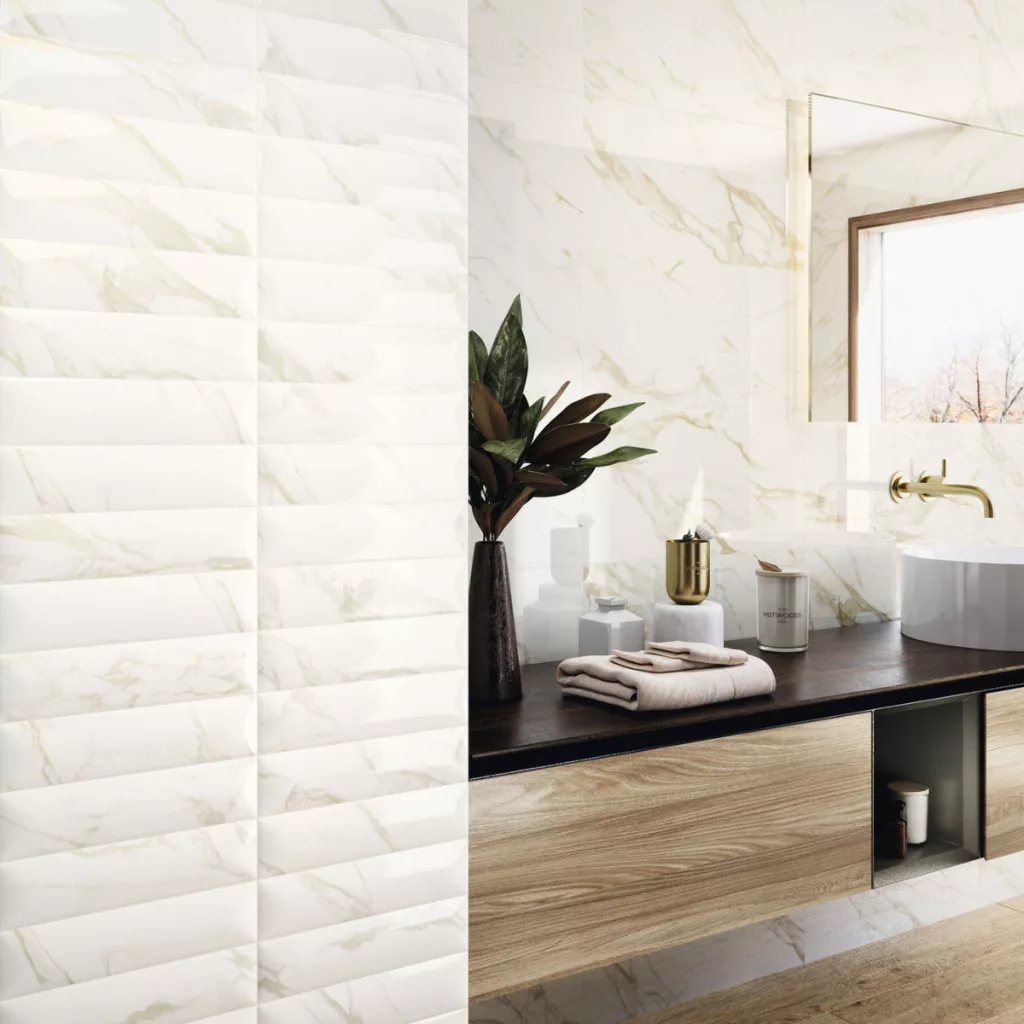 Álmodj nyitott szemmel és képzelj el egy fürdőszobát vagy konyhát márványba öltöztetve. Ha ránézel az Adaggio Gold-ra, nem mondhatsz nemet. Ez a stílusos márvány lap szerelem első látásra. Alkalmazható nappaliban, folyosón, fürdőszobában vagy konyhapult körül. Az Adaggio Gold burkolólapokat precíz kialakítás, rektifikált élek, nagy szilárdság és könnyű ragasztás jellemzi. Az Adaggio Gold a márványlapok utánzata. A lapok fehér háttérrel és jellegzetes arany-bézs színnel tűnnek ki. Fényűző dizájnnal rendelkeznek és kialakításuk megjelenésének köszönhetően pazar hangulatot kölcsönöznek minden helyiségnek.