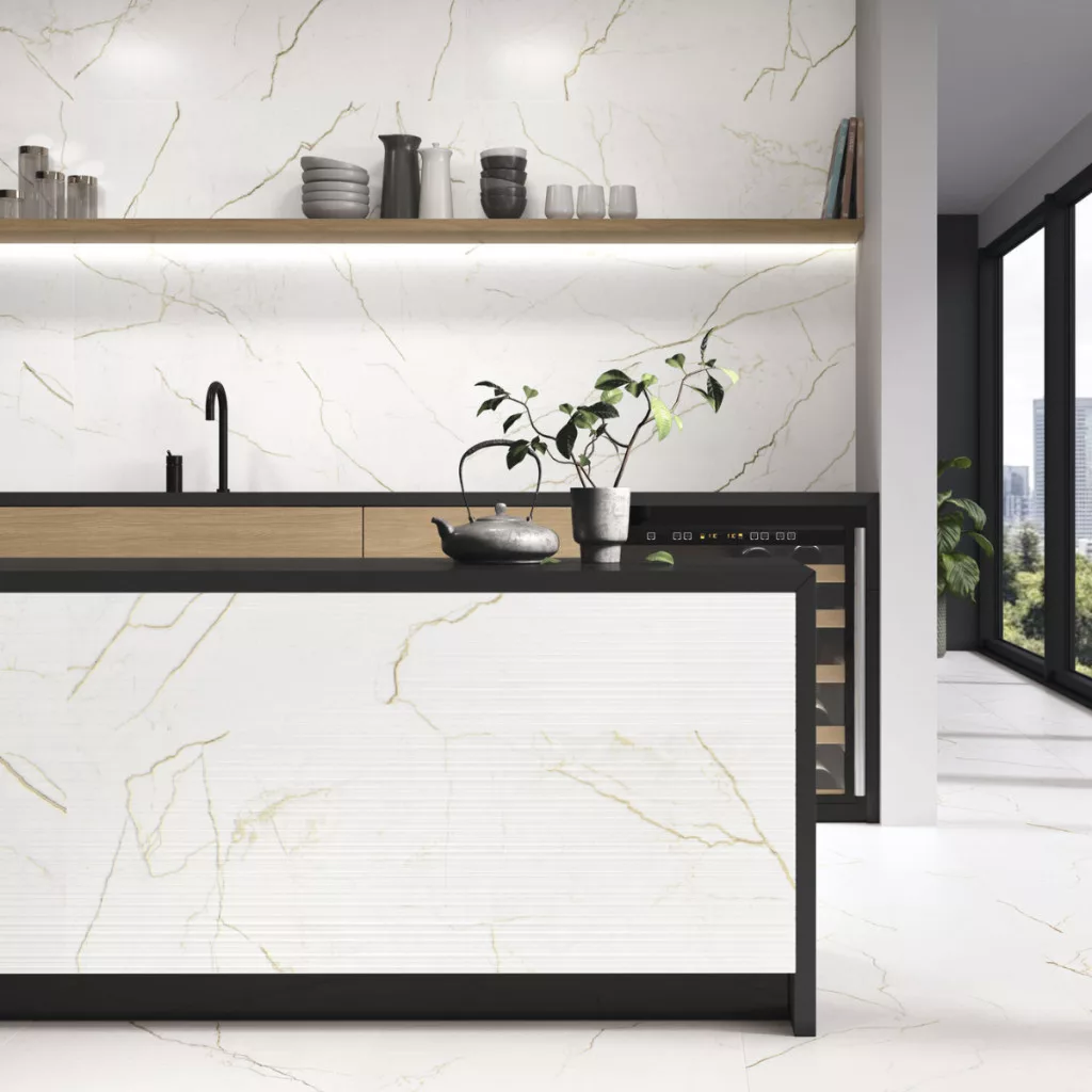 Álmodj nyitott szemmel és képzelj el egy fürdőszobát vagy konyhát márványba öltöztetve. Ha ránézel a Quantum Satin burkolatra, nem mondhatsz nemet. Ez a stílusos márvány lap szerelem első látásra. Alkalmazható nappaliban, folyosón, fürdőszobában vagy konyhapult körül. A Quantum Satin burkolólapokat precíz kialakítás, rektifikált élek, nagy szilárdság és könnyű ragasztás jellemzi. A Quantum Satin a márványlapok utánzata. A lapok fehér háttérrel és jellegzetes arany-bézs színnel tűnnek ki. Fényűző dizájnnal rendelkeznek és kialakításuk megjelenésének köszönhetően pazar hangulatot kölcsönöznek minden helyiségnek.