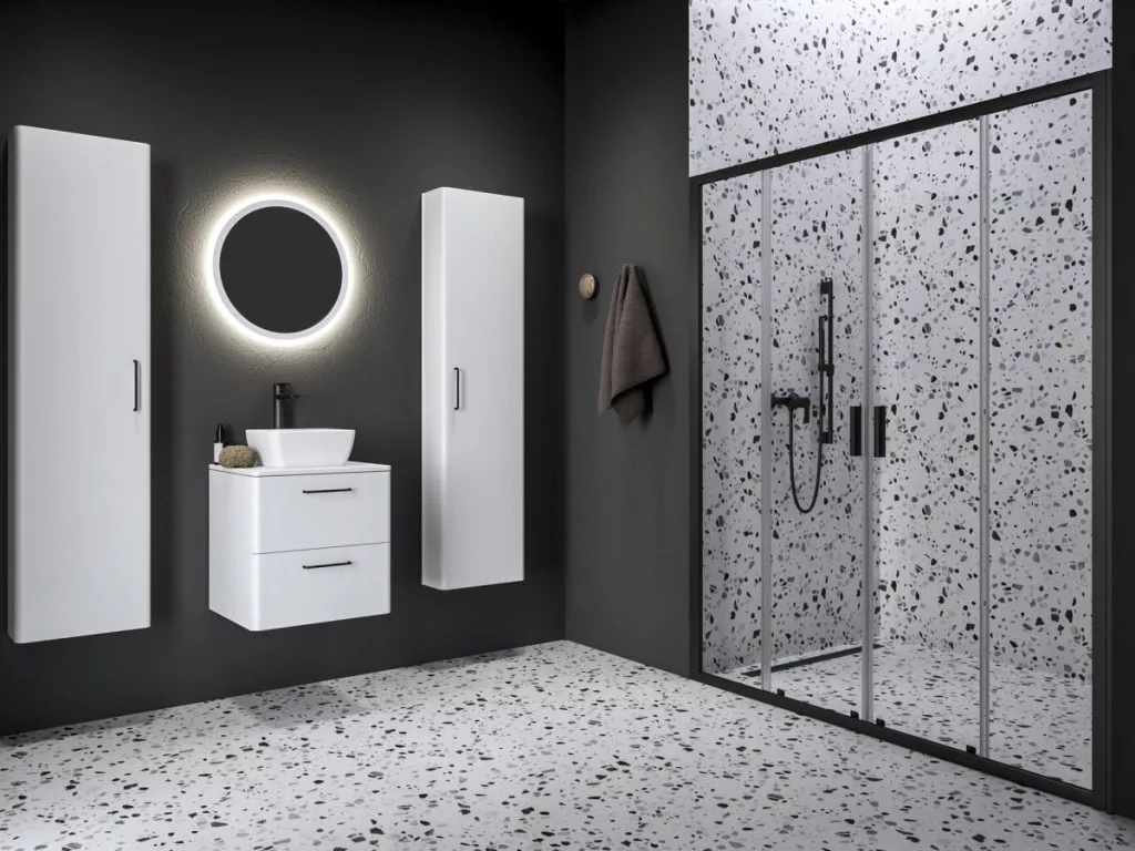 A fürdőszoba burkolt sarkába telepíthető (önállóan, burkolt falfülkébe vagy a NBLPS fix fal kombinációjával) közvetlenül a padlóra, beépített zuhanyfolyókával, padlóösszefolyóval. Két NBLPS fix fal kombinációjával „U” alakú zuhanyzót hozhat létre.