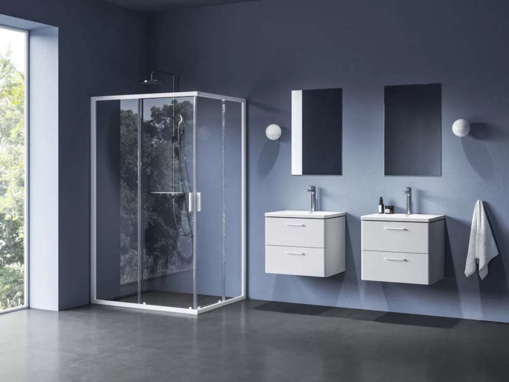 A zuhanykabin két zuhanyajtóból áll! A terméket a burkolt fürdőszoba sarkába telepítheti zuhanyfolyókával vagy padlóösszefolyóval közvetlenül a padlóra.