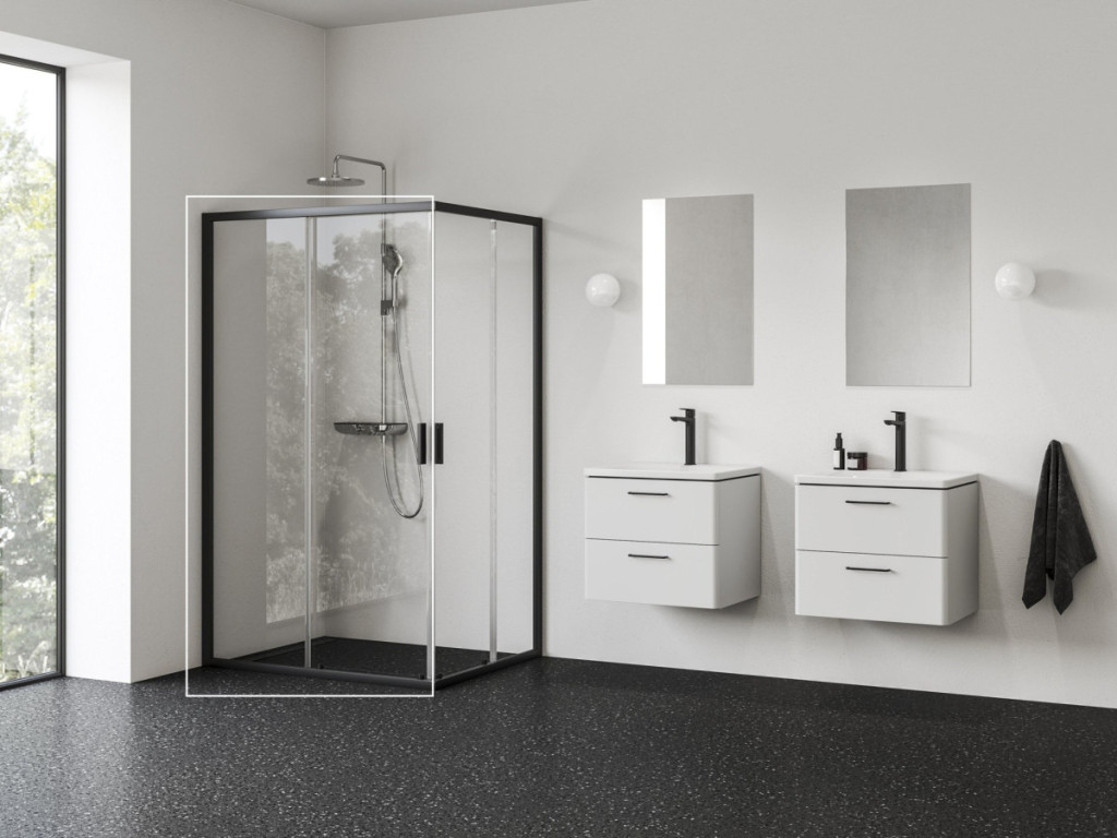 A zuhanykabin két zuhanyajtóból áll! A fürdőszoba burkolt sarkába telepíthető a Ravak Gigant, Gigant Pro, Gigant Pro Flat, Gigant Pro Chrome zuhanytálcákra, vagy közvetlenül a padlóra, beépített zuhanyfolyókával, padlóösszefolyóval.