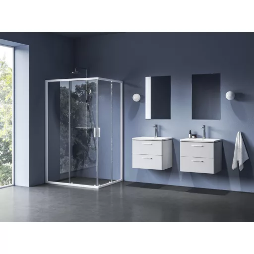A zuhanykabin két zuhanyajtóból áll! A fürdőszoba burkolt sarkába telepíthető a Ravak Angela, Perseus Pro, Perseus Pro Flat, Perseus Pro Chrome, Gigant, Gigant Pro, Gigant Pro Flat, Gigant Pro Chrome zuhanytálcákra, vagy közvetlenül a padlóra, beépített zuhanyfolyókával, padlóösszefolyóval.