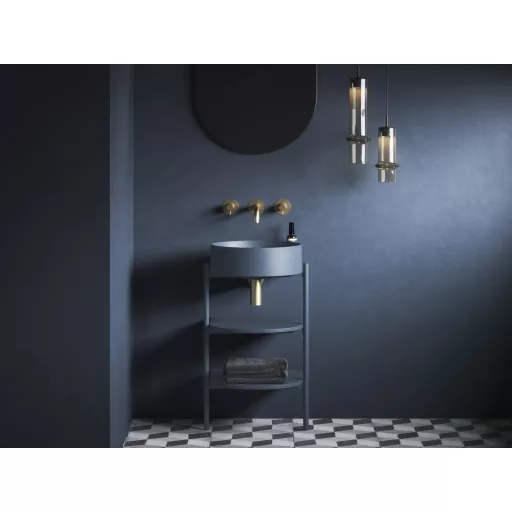 A Yard nyitott bútor stabil fémszerkezetből és két polcból áll. A CS Yard 40 polcokkal ellátott álló fémszerkezet kifejezetten a Yard 40 dizájnos mosdóhoz készült. A szerkezet szifonlyukkal és rögzítő lábakkal van felszerelve. A polcok tökéletesen követik a mosdó formáját és rengeteg tárolóhelyet biztosítanak. A terméket a falhoz kell rögzíteni. Bontott állapotban 1 csomagban szállítjuk. A Yard fürdőszobabútor sorozat lehetővé teszi a Yard mosdó, csaptelep, leeresztő és szifon kombinálását a kiválasztott színkombinációkban a tökéletes eredmény érdekében.