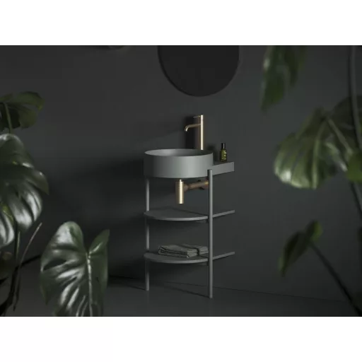 A Yard nyitott bútor stabil fémszerkezetből és két polcból áll. A CS Yard 40 polcokkal ellátott álló fémszerkezet kifejezetten a Yard 40 dizájnos mosdóhoz készült. A szerkezet szifonlyukkal és rögzítő lábakkal van felszerelve. A polcok tökéletesen követik a mosdó formáját és rengeteg tárolóhelyet biztosítanak. A terméket a falhoz kell rögzíteni. Bontott állapotban 1 csomagban szállítjuk. A Yard fürdőszobabútor sorozat lehetővé teszi a Yard mosdó, csaptelep, leeresztő és szifon kombinálását a kiválasztott színkombinációkban a tökéletes eredmény érdekében.