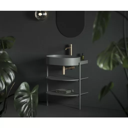 A Yard nyitott bútor stabil fémszerkezetből és két polcból áll. A CS Yard 60 polcokkal ellátott álló fémszerkezet kifejezetten a Yard 60 dizájnos mosdóhoz készült. A szerkezet szifonlyukkal és rögzítő lábakkal van felszerelve. A polcok tökéletesen követik a mosdó formáját és rengeteg tárolóhelyet biztosítanak. A terméket a falhoz kell rögzíteni. Bontott állapotban 1 csomagban szállítjuk. A Yard fürdőszobabútor sorozat lehetővé teszi a Yard mosdó, csaptelep, leeresztő és szifon kombinálását a kiválasztott színkombinációkban a tökéletes eredmény érdekében.