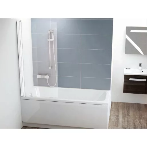 A fürdőkád paraván 6 mm vastag biztonsági üvegből készült. A termék egy kifelé és befelé is nyitható ajtóból áll. A kifelé-befelé nyithatóság, valamint a Transparent üveg megkönnyíti a tisztántartást. A fürdőkád paravánt téglalap alakú kádakhoz lehet telepíteni vagy bármilyen hagyományos téglalap alakú kádhoz, amelynek felső széle egyenes. A paraván standard magassága 1500 mm.