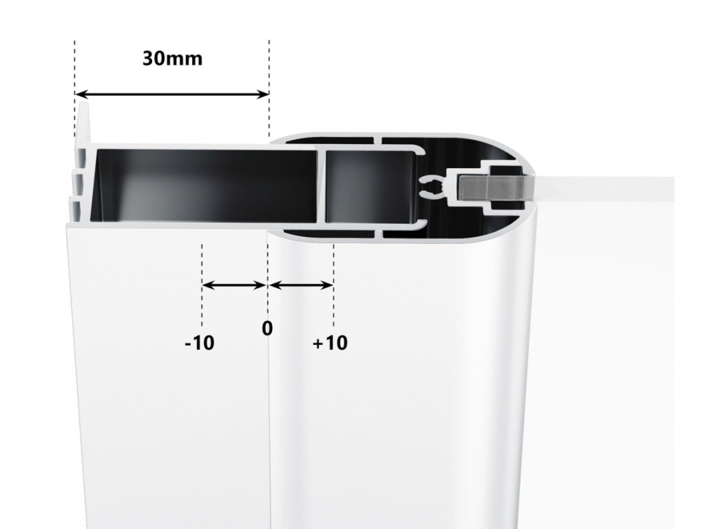 A szélesebb CNPS U - profillal helyettesítheti a csomagolásban található standard fali profilt. A standard U - profil cseréjével - a szélesebb CNPS fali profillal - a termék további 2 cm-rel bővíthető.