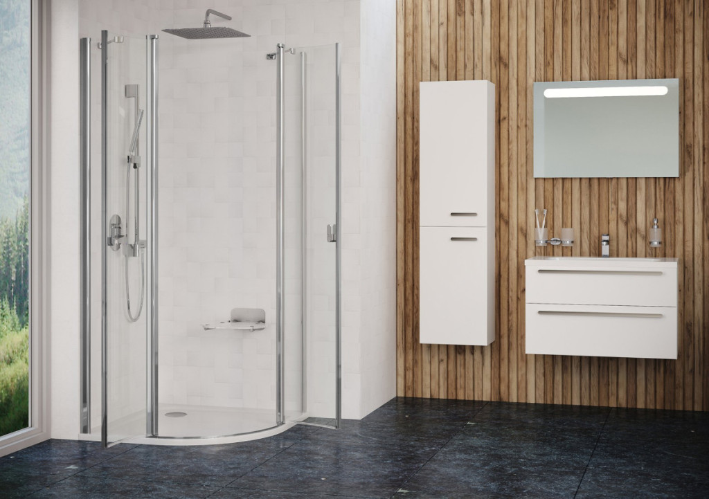 A terméket a burkolt fürdőszoba sarkába szerelik Ravak Elipso Pro, Elipso Pro Flat, Elipso Pro Chrome öntött márvány zuhanytálcára vagy közvetlenül a padlóra zuhanyfolyókával, padlóösszefolyóval. A csomag tartalmaz 2 rövid távtartót. A sugár 500 mm.
