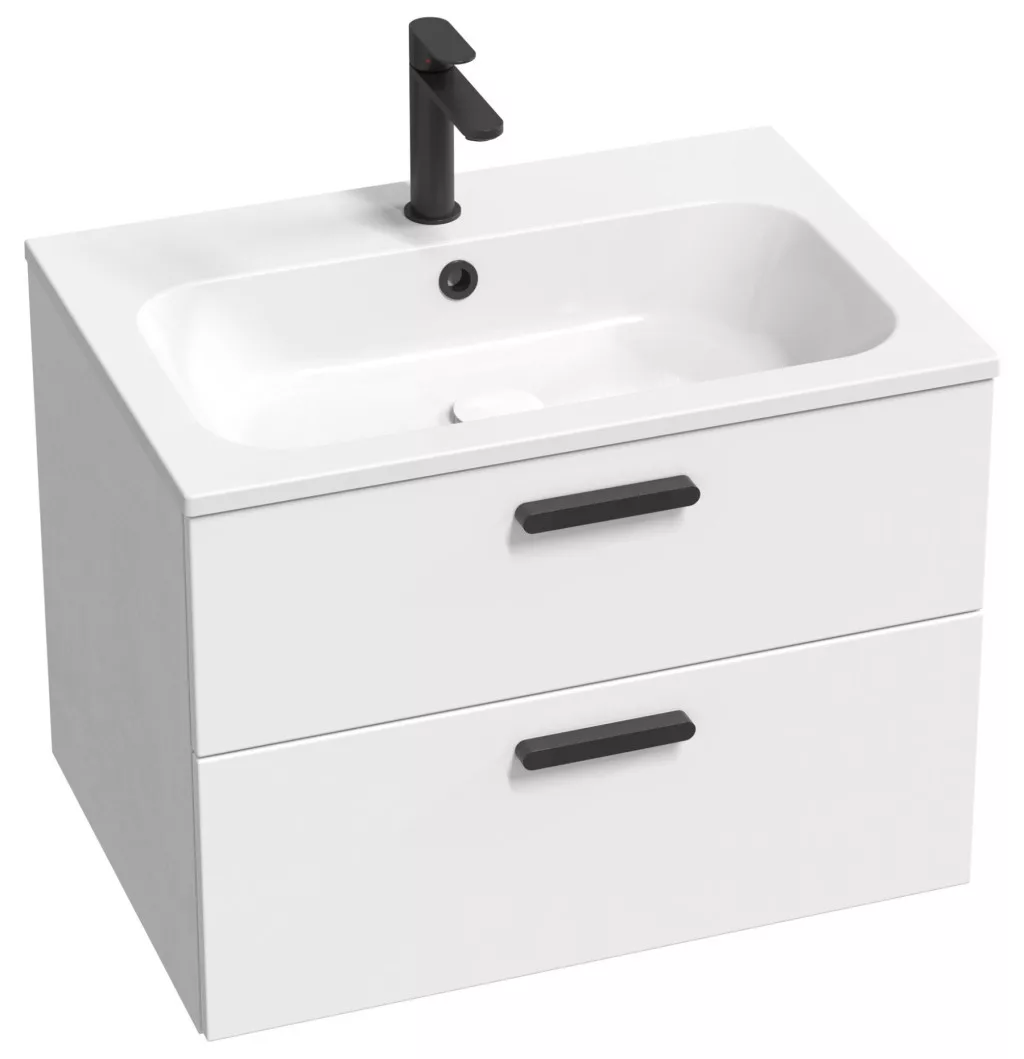 Az SD Chrome II 70 mosdó alatti szekrény két fiókos tárolóhellyel van ellátva. Az ajtót fényes fehér, a fogantyúval a választott színárnyalatban, összeszerelt állapotban szállítjuk. A szerelőkészlet (csavarok, zsanérok) a bútorlap részét képezik. A design harmonizálása érdekében javasoljuk a Chrome koncepció további elemeivel vagy más Ravak termékekkel kombinálni.