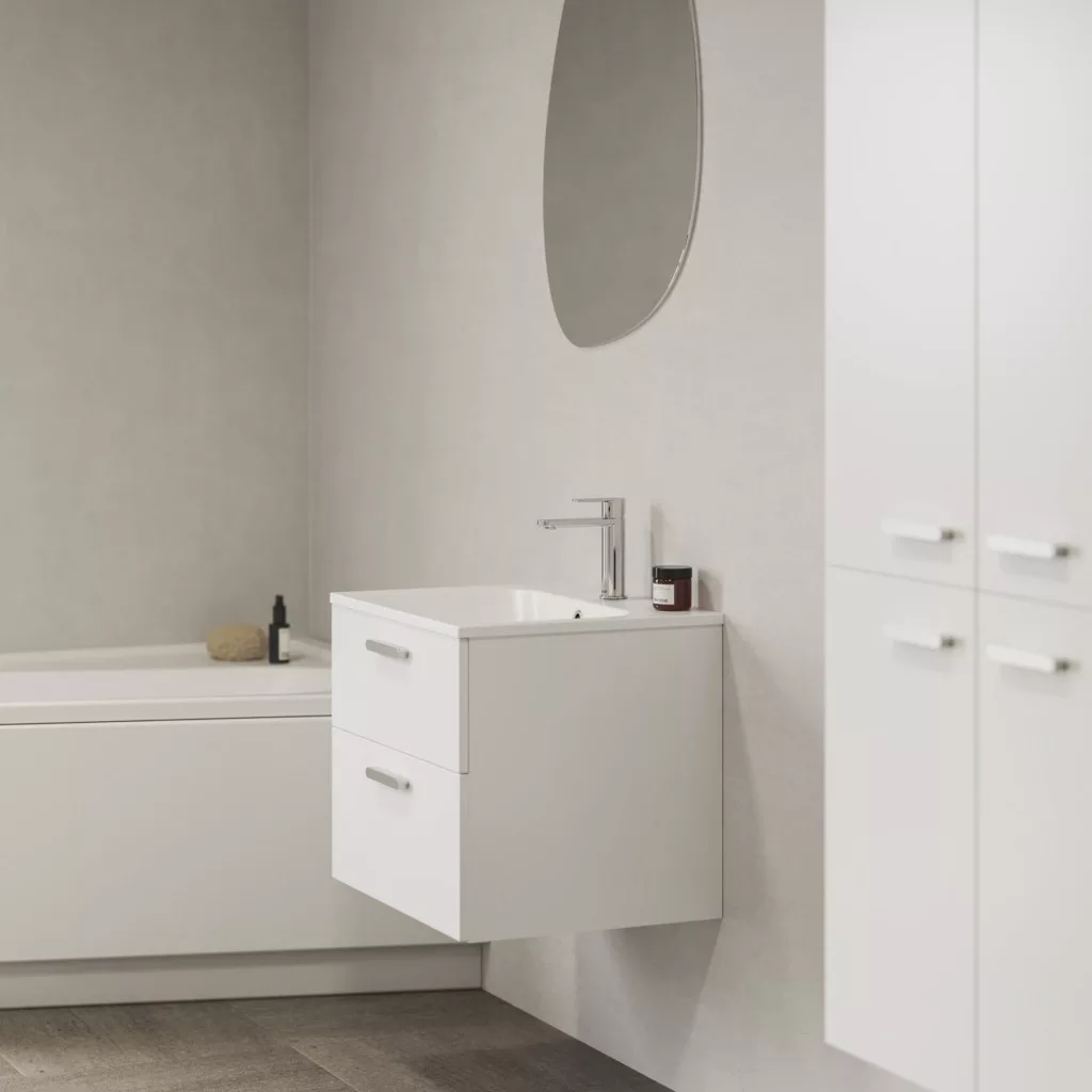 Az SD Chrome II 70 mosdó alatti szekrény két fiókos tárolóhellyel van ellátva. Az ajtót fényes fehér, a fogantyúval a választott színárnyalatban, összeszerelt állapotban szállítjuk. A szerelőkészlet (csavarok, zsanérok) a bútorlap részét képezik. A design harmonizálása érdekében javasoljuk a Chrome koncepció további elemeivel vagy más Ravak termékekkel kombinálni.