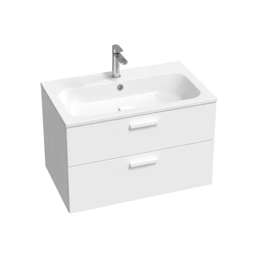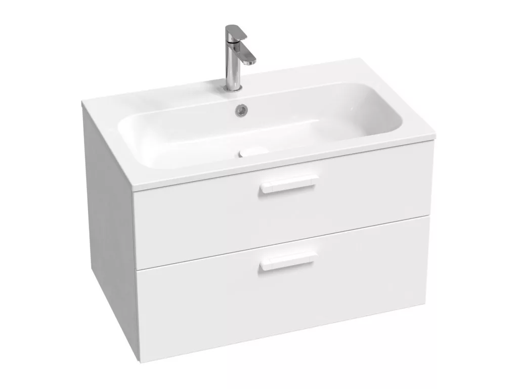 Az SD Chrome II 80 mosdó alatti szekrény két fiókos tárolóhellyel van ellátva. Az ajtót fényes fehér, a fogantyúval a választott színárnyalatban, összeszerelt állapotban szállítjuk. A szerelőkészlet (csavarok, zsanérok) a bútorlap részét képezik. A design harmonizálása érdekében javasoljuk a Chrome koncepció további elemeivel vagy más Ravak termékekkel kombinálni.