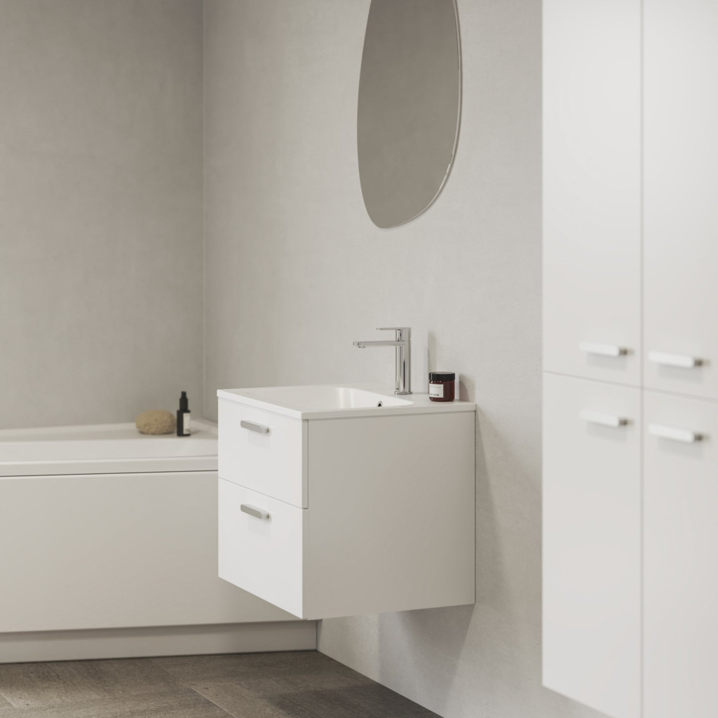 Az SD Chrome II 80 mosdó alatti szekrény két fiókos tárolóhellyel van ellátva. Az ajtót fényes fehér, a fogantyúval a választott színárnyalatban, összeszerelt állapotban szállítjuk. A szerelőkészlet (csavarok, zsanérok) a bútorlap részét képezik. A design harmonizálása érdekében javasoljuk a Chrome koncepció további elemeivel vagy más Ravak termékekkel kombinálni.
