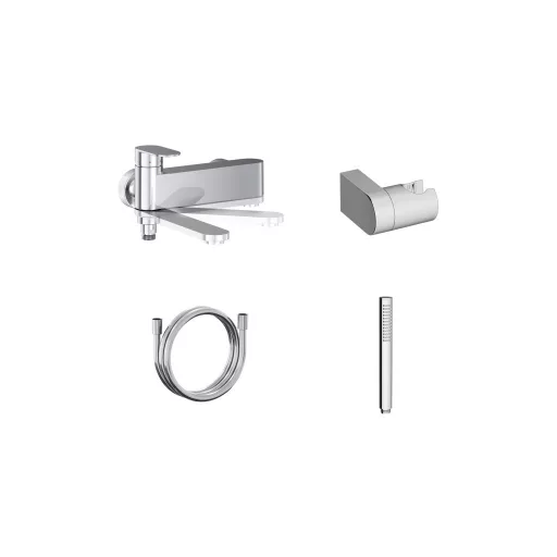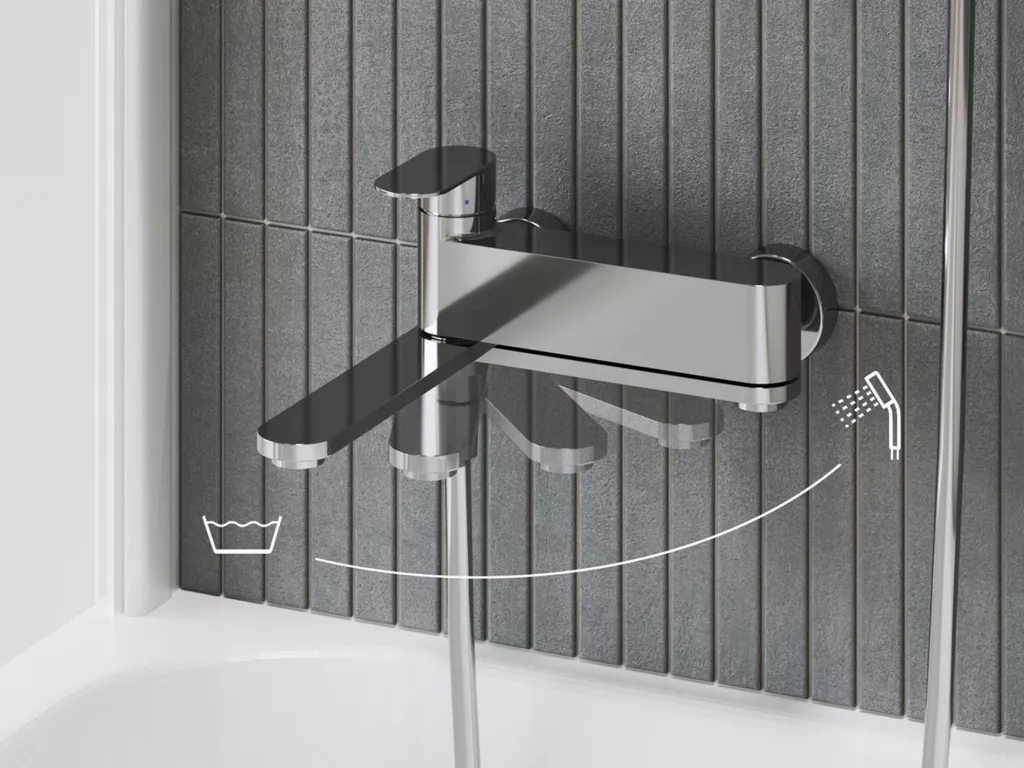 A kádcsaptelep speciális váltómechanizmussal rendelkezik. A kar felemelésekor a víz a zuhanyba áramlik. A kifolyócső kifordításával vált át a rendszer, és indul meg a vízfolyás a kádba. A csaptelep Chrome polccal egészíthető ki, amely felülről egyszerű rápattintással rögzíthető, szerelés nélkül. A kézi zuhany Air funkcióval rendelkezik, amely lehetővé teszi a levegő beszívását a vízsugárba. Ennek köszönhetően a víz lágyabb és kellemesebb érzetű a bőrön, miközben vízmegtakarítást is eredményez. A zuhanyfej burkolata alatt kialakított csatornák segítik a maradék víz távozását. Az EasyClean funkció lehetővé teszi a vízkő egyszerű eltávolítását a kézi zuhany fúvókáiból.