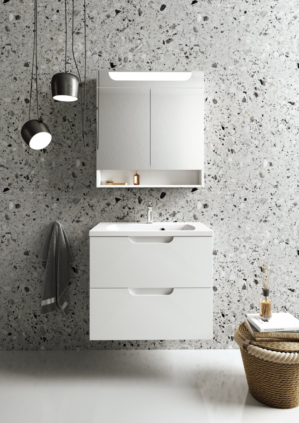 Egységes megoldás és a fürdőszoba designjának összhangja érdekében javasoljuk, hogy kombinálja a tükörszekrényt a Classic II koncepció többi termékével.