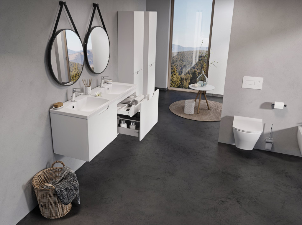Az egységes megoldás és a fürdőszoba design összhangjának érdekében javasoljuk, hogy a mosdó alatti szekrényt kombinálja a Classic II koncepció többi termékével.