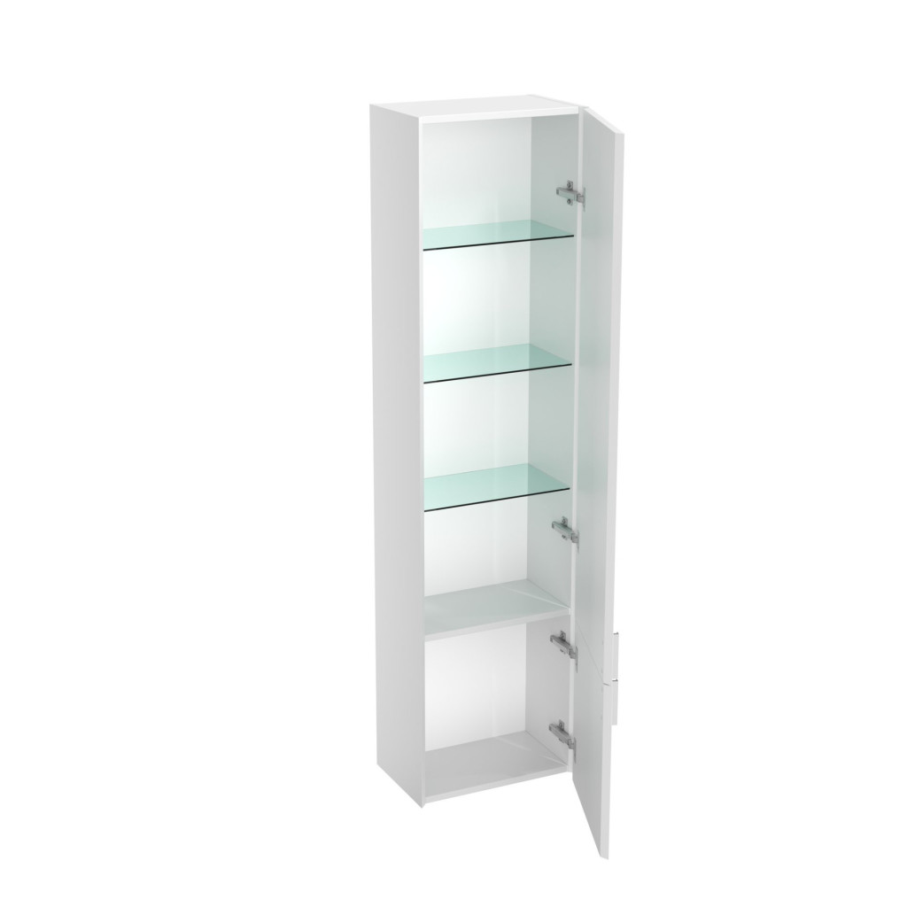 A két ajtó, beleértve a belső fiókot, kellemesen tagolt teret biztosít a különböző méretű tárgyak elhelyezéséhez. Clear II faliszekrény három üvegpolccal a felső részben. Az ajtó záró csappantyúkkal van felszerelve. Összeszerelt állapotban szállítjuk. A magas szekrényt a falra szereljük.