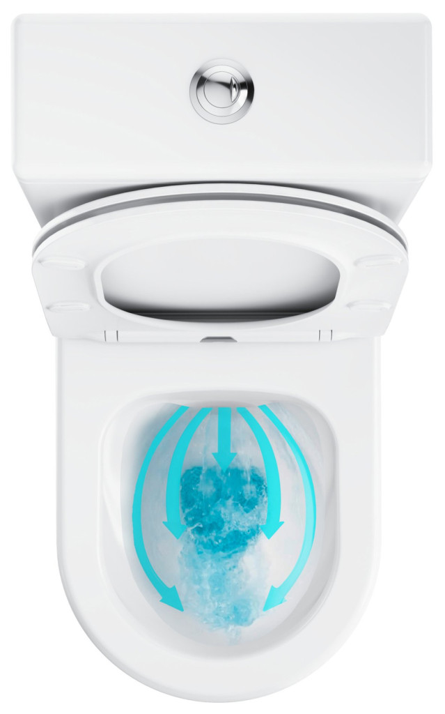 Az Elegant RimOff WC kombi vario (kettős) lefolyóval rendelkezik, ennek köszönhetően csatlakoztatható a hátsó vízszintes és az alsó függőleges könyökhöz.