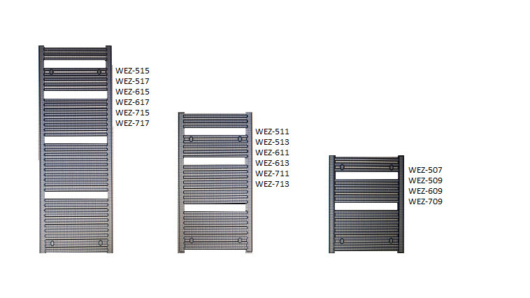 Az Enix Wezyr fürdőszobai radiátorai kiváló minőségűek és nagyon praktikusak. Nagyon népszerűek azok a modellek, amelyeknél a csövek lágy ívben  meg vannak hajlítva, így lehetővé válik a törölköző kényelmes felakasztása. A fürdőszobai radiátorok nagy precizitással, a legjobb minőségű anyagból készülnek. A letisztult radiátor kiegészíthető 900 W-os fűtőpatronnal. Ne hagyja figyelmen kívül a segítséget nyújtó bekötési ábrákat!  Szélesség: 500 mm Magasság: 1490 mm  Térfogat: 6,2 liter Szelep bekötési távolság: 450 mm  Teljesítmény: 923 W Ajánlott fűtőpatron: 900 W  Bekötés: Két oldalról külön beköthető  Típus:WEZ-515 Rendelhető színek:  Az Enix Wezyr radiátor ára a RAL9016 fehér színre vonatkozik, ezen kívül megrendelhető 34 alapszínben és közel 200 féle RAL színben is. További információért vegye fel velünk a kapcsolatot.