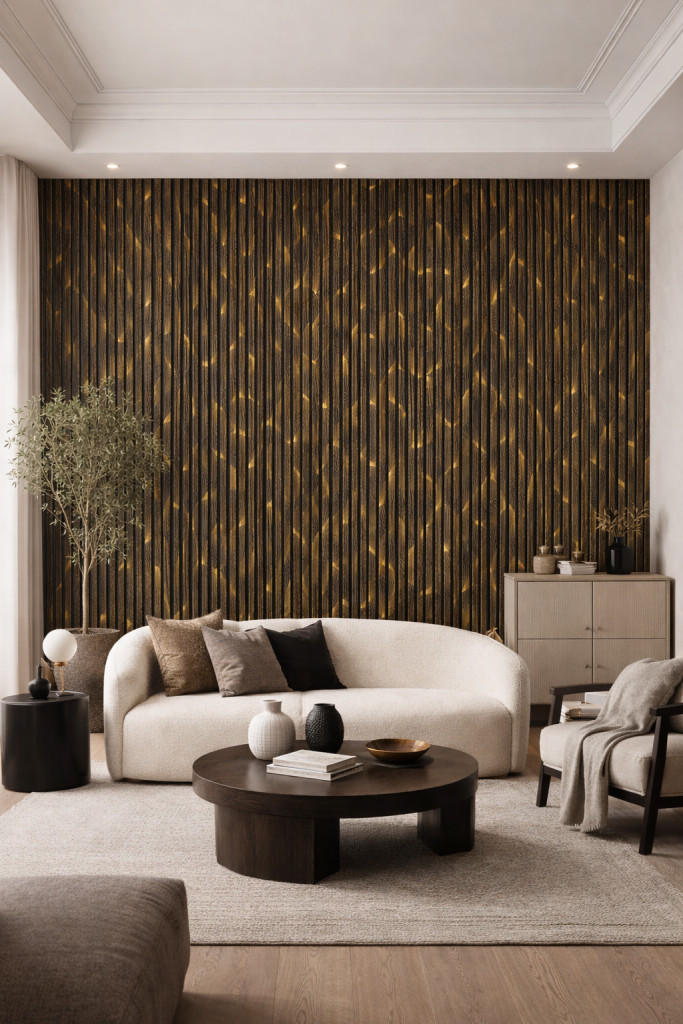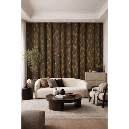 Ez a panel azoknak szól, akik nem a visszafogott megoldásokat keresik. A fekete–arany kombináció időtlen eleganciát sugároz, miközben a lamellás struktúra modern ritmust ad a felületnek.