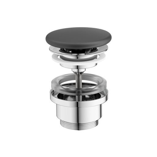Flat állandó mosdó lefolyó kerámia dugóval matt antracit kivitelben. Alkalmas túlfolyó nélküli mosdókhoz.