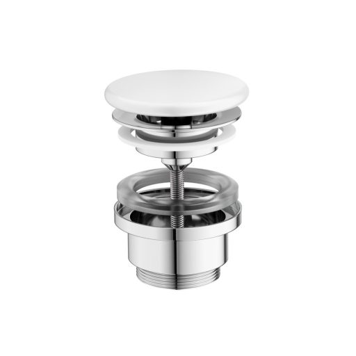 Flat állandó mosdó lefolyó kerámia dugóval fehér kivitelben. Alkalmas túlfolyó nélküli mosdókhoz.