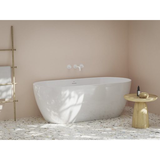 Freedom O Tec 170x77 akrilkád, fehér szabadonálló, fehér/fekete/króm lefolyó