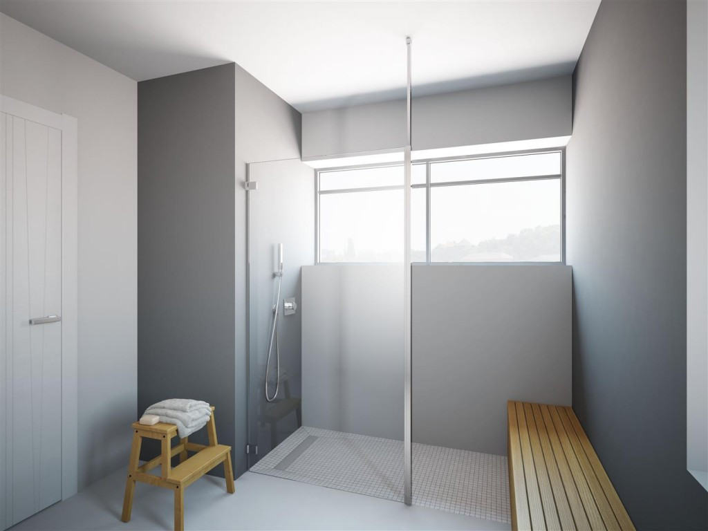 Mennyezetre szerelhető teleszkóprúd olyan zuhanykabinokhoz, ahol nincs lehetőség a falra szerelt hagyományos stabilizátor használatára.