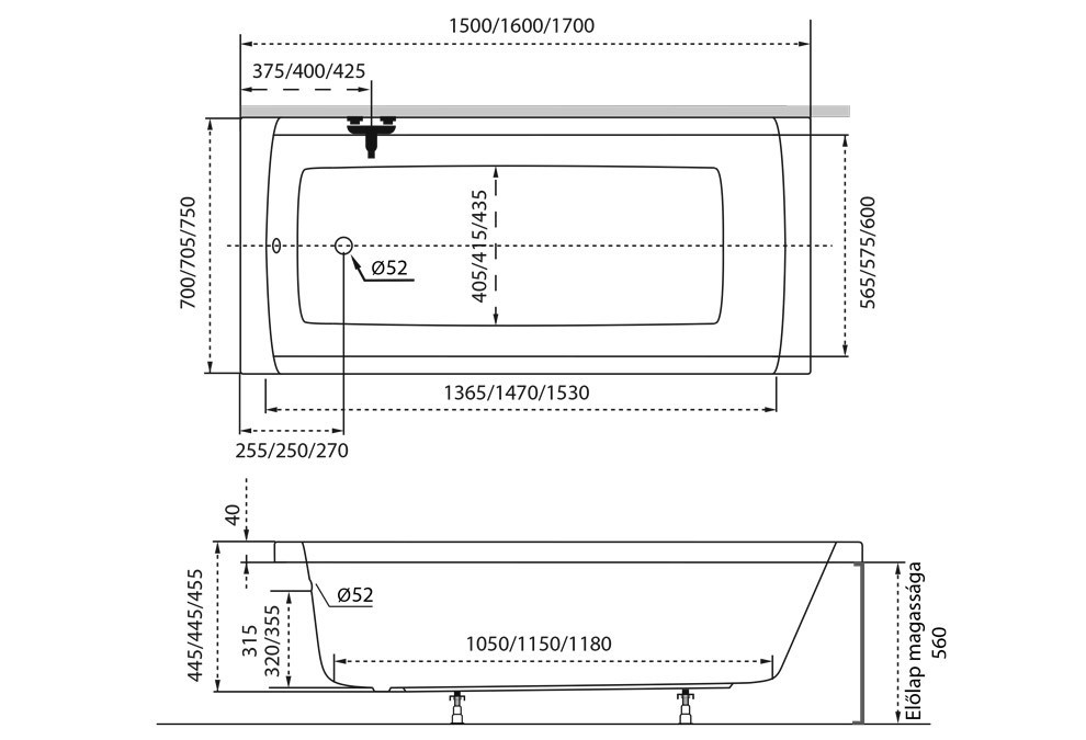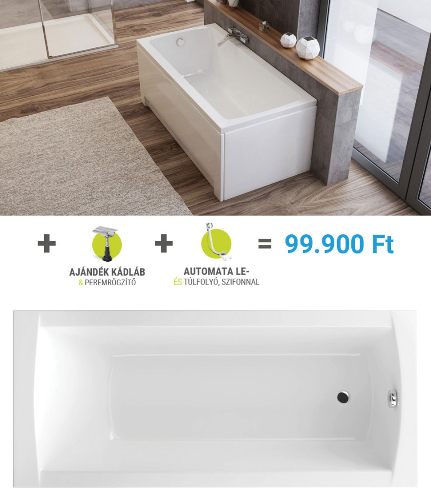 Fürdőkád acryl Viva 150x70 cm + kádláb + lefolyó