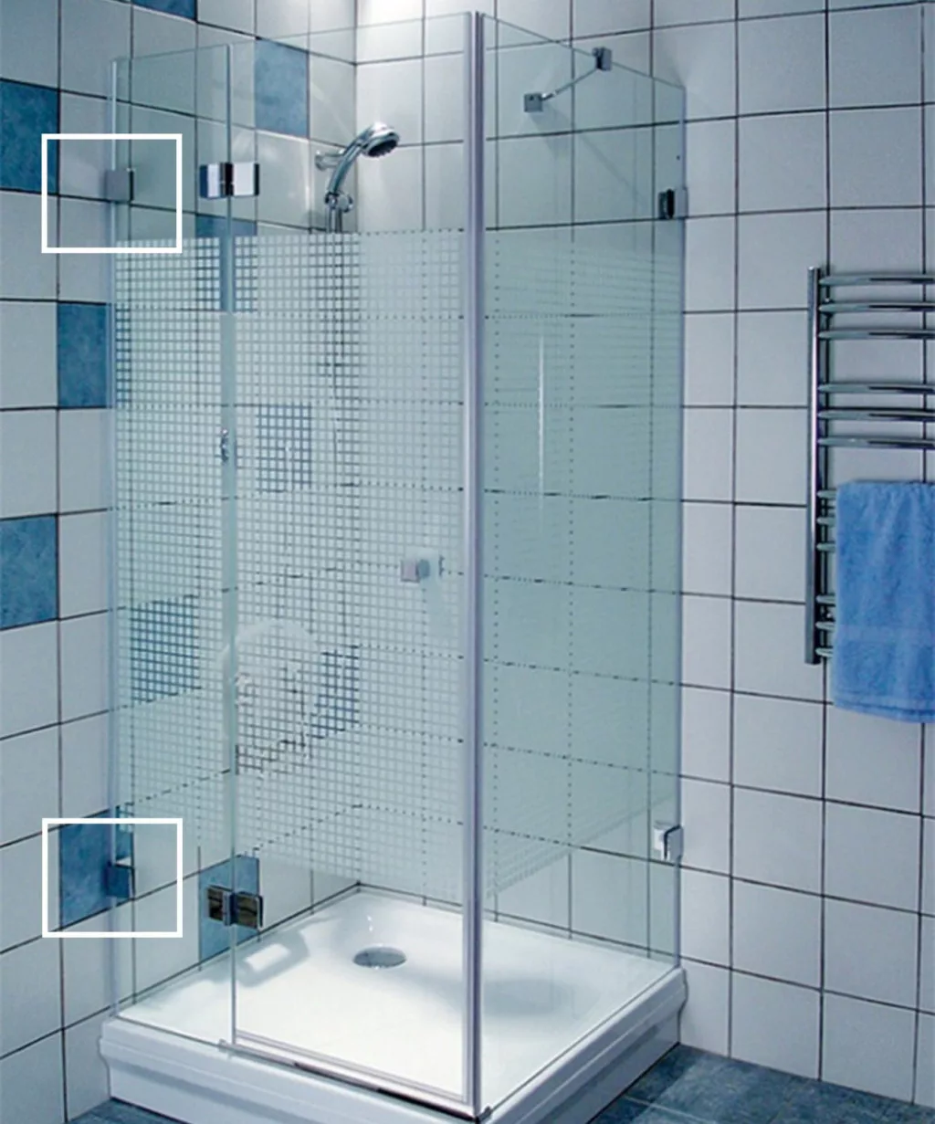 A zsanér a zuhanyfülke belső részén vannak az üvegbe süllyesztve, és így megkönnyítik annak karbantartását.