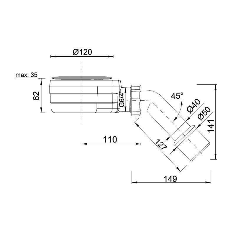 Zuhanytálca szifon, Ø90A szifon vízáteresztő képessége: 42 l/perc. Szifon tálca alatti magassága: 55 mm Ajándék minden Teos C és F tálcához!