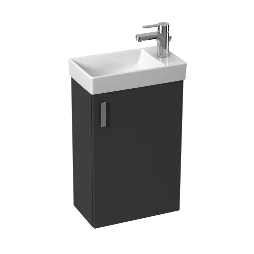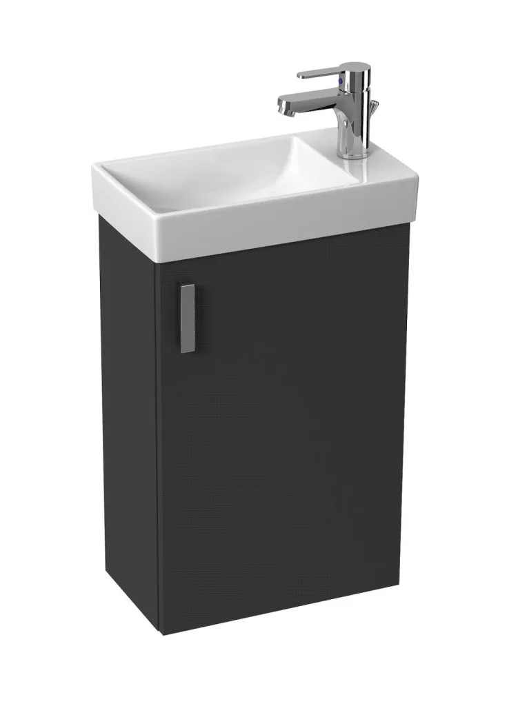 Tökéletes fürdőszoba minimalista kivitelben. Az 1 ajtós, geometriai formájú alsószekrényt kényelmes 1+1-es csomagban kínáljuk, a 400 x 230 mm-es Petit mosdóval és a jobb oldali csaptelep furattal együtt.