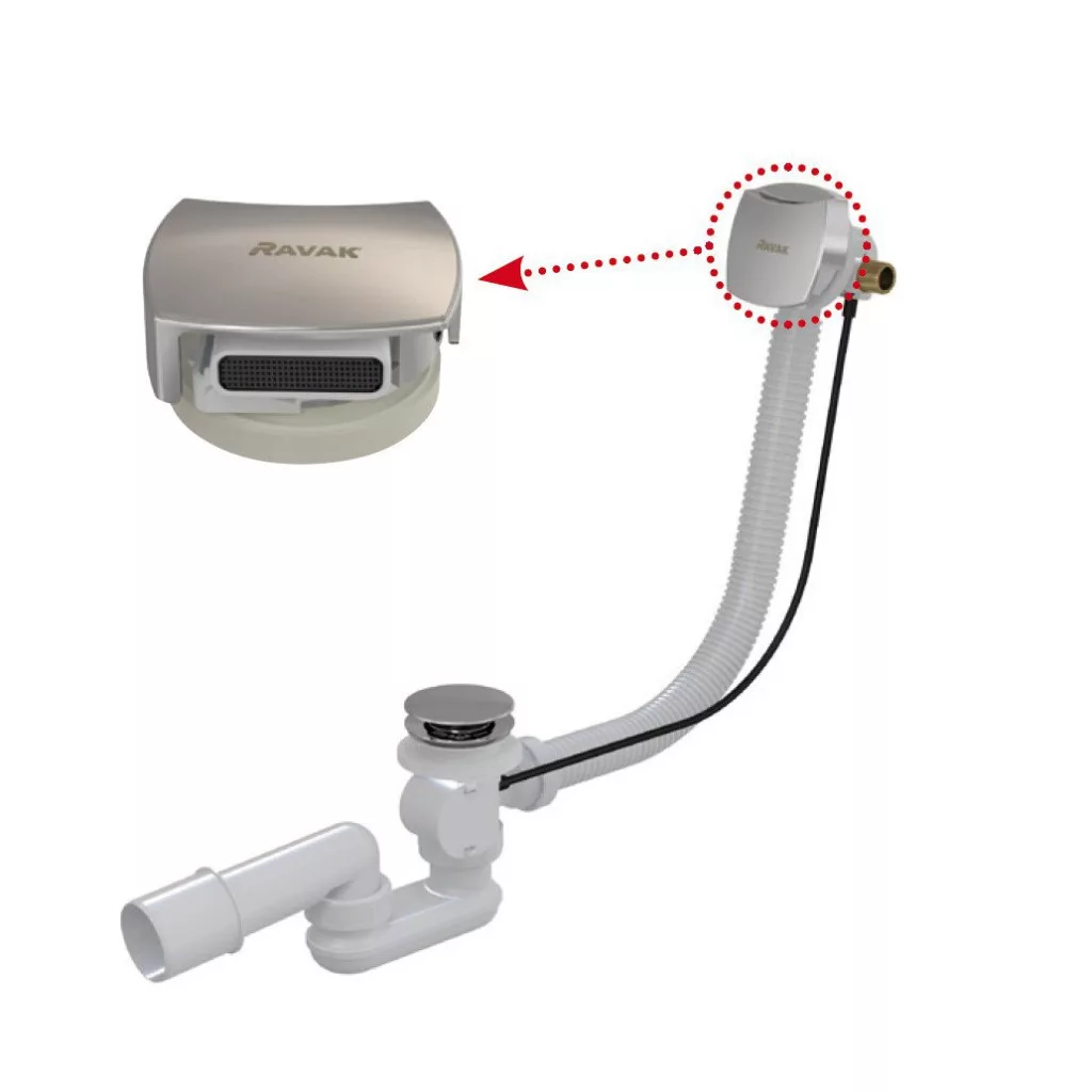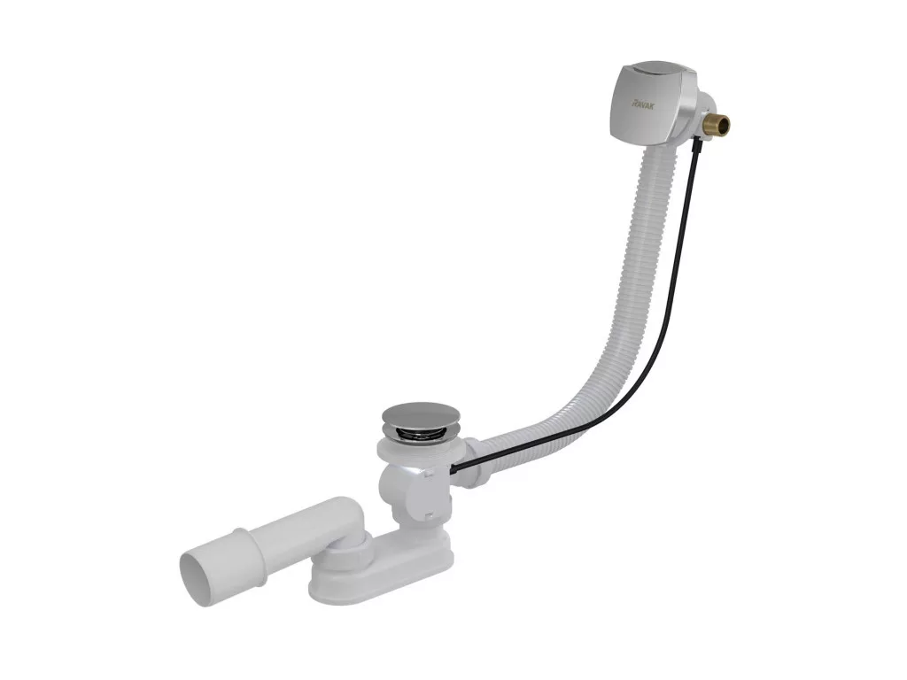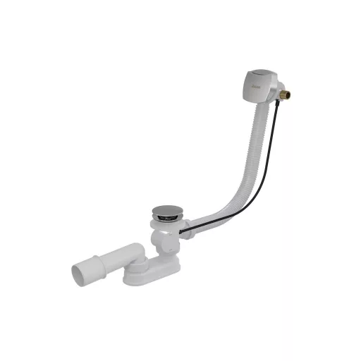 A termék tartalmazza a szifont (szagzárót), a szifon fém dugóját és a műanyag töltőfejet is. A leeresztő vezérlése négyzet alakú, fényes króm felületkezeléssel.
