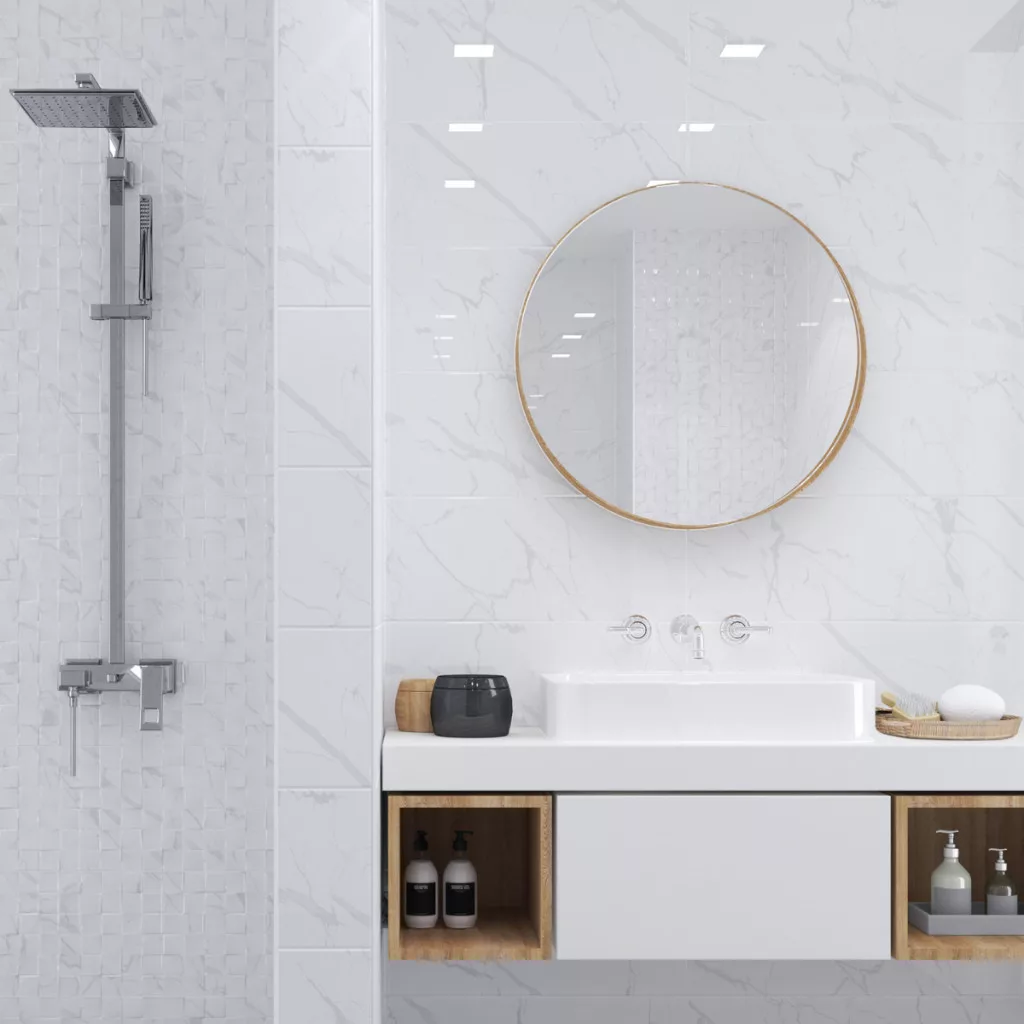 Válaszd a Kanjiza Luxor White burkolatot a falburkoláshoz, ha egy igazán egyedi márvány mintás falburkolatot szeretnél, ami jól mutat a ház bármely pontján, legyen az konyha vagy fürdőszoba. A márvány mintázata tökéletes inspiráció lehet a beltér burkolásához. Kiváló választás a luxus hatásának eléréséhez. Fényes felületével igényes belsőt teremt és optikailag nagyobbítja meg a belső teret. Háztartási vegyszerekkel szembeni ellenállás.