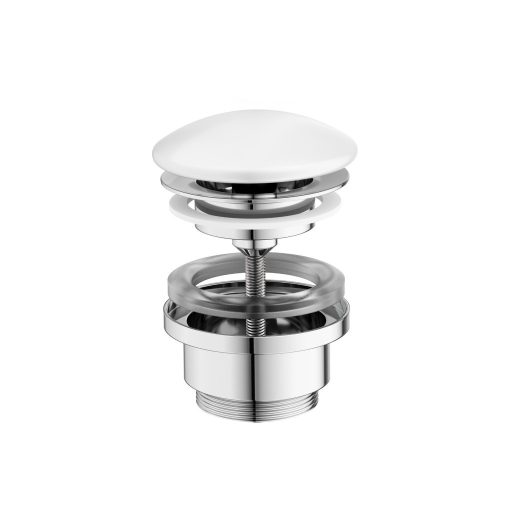 Állandó mosdó lefolyó kerámia dugóval fehér kivitelben. Alkalmas túlfolyó nélküli mosdókhoz.
