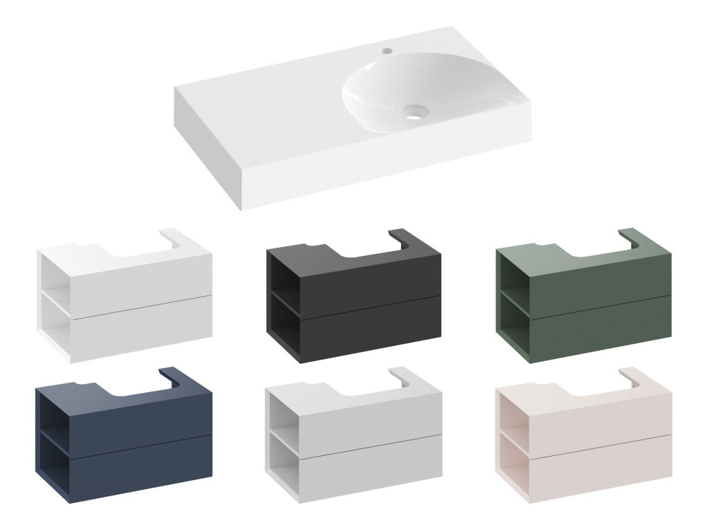 - megvásárolható tartozékok: fix mosdólefolyó, mosdószifon, mosdócsaptelep, SD Lite 80 vagy SD Lite 80 bal mosdószekrény