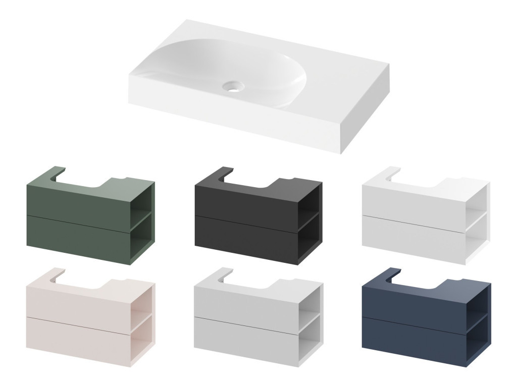 - megvásárolható tartozékok: fix mosdólefolyó, mosdószifon, falra szerelhető mosdócsaptelep, SD Lite 80 vagy SD Lite 80 jobb mosdószekrény
