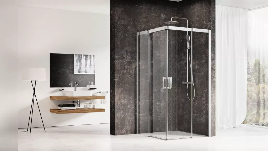 A termék két egyenes fix részből és két egyenes mozgatható részből áll, amelyek tolóajtót alkotnak. A fürdőszoba csempézett sarkába, közvetlenül a padlóra telepíthető zuhanyfolyókával vagy padlóösszefolyóval.