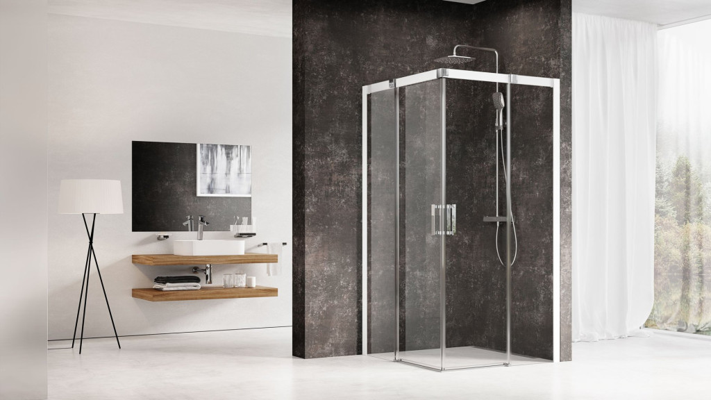 A termék két egyenes fix részből és két egyenes mozgatható részből áll, amelyek tolóajtót alkotnak. A fürdőszoba csempézett sarkába, közvetlenül a padlóra telepíthető zuhanyfolyókával vagy padlóösszefolyóval.