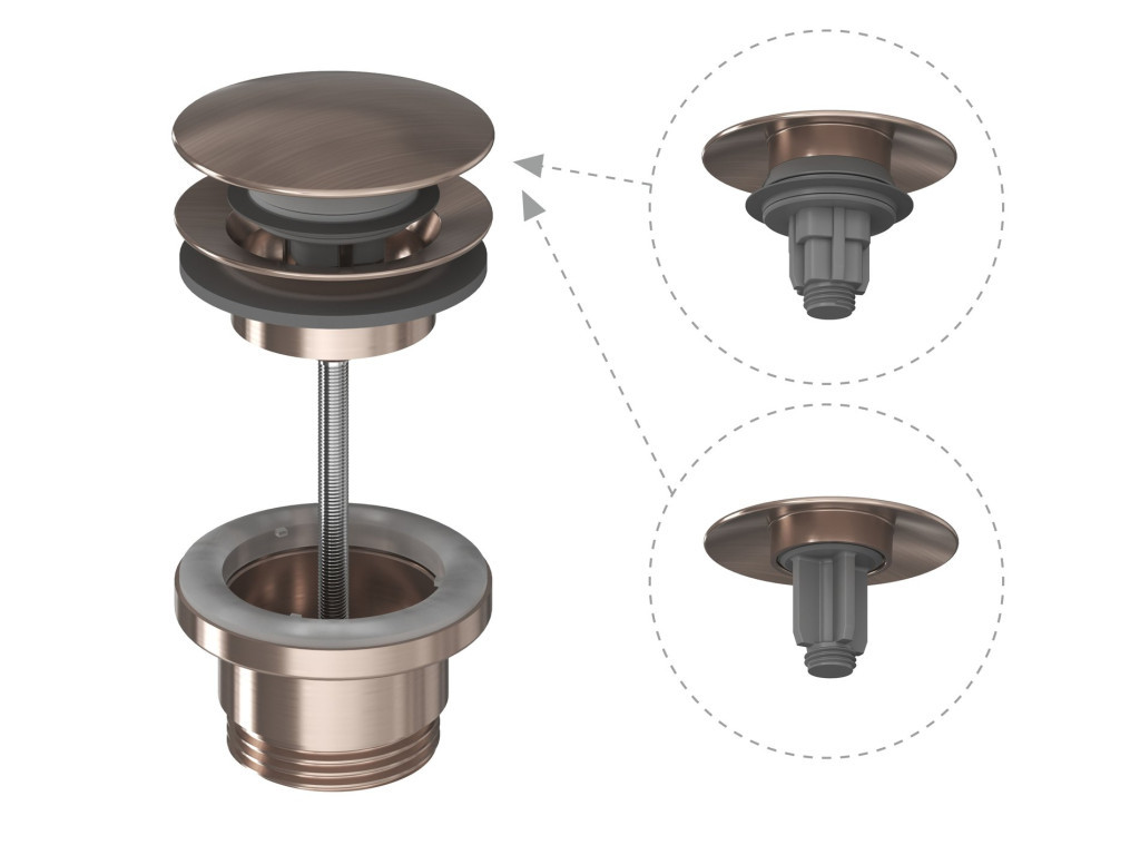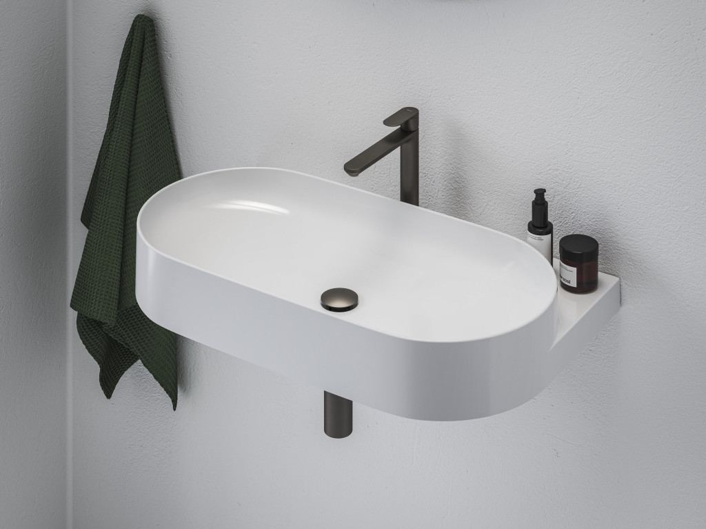 A grafit színű Click-Clack dugó luxus hatást kelt a mosdóban, és ipari stílusú fürdőszobákhoz illik. A falra szerelt mosdóban lévő fekete dugót javasoljuk grafit szifonnal kombinálni.