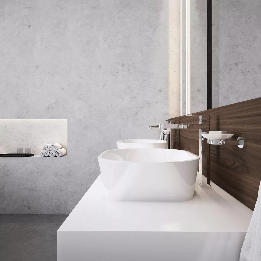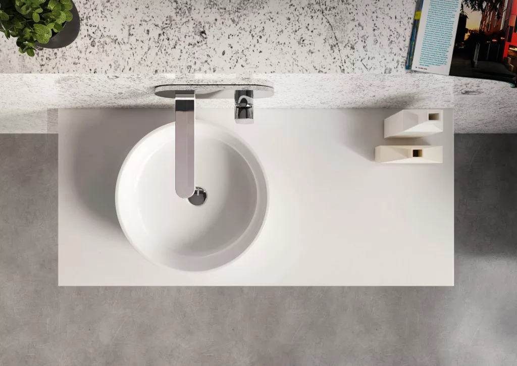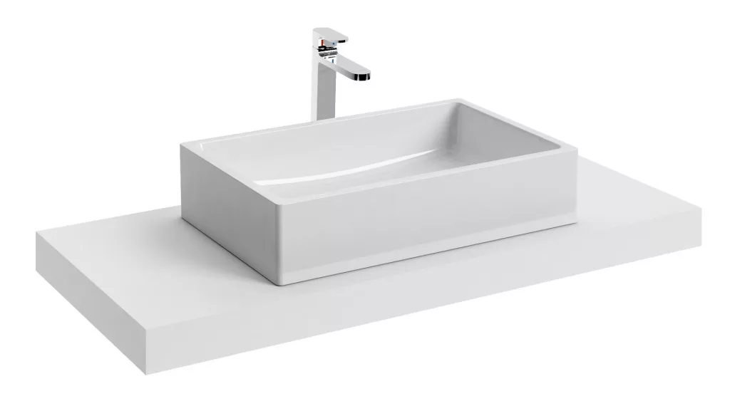 Az univerzális pultlap alkalmas a pultra helyezhető mosdók többségéhez. Fehér kivitelben.