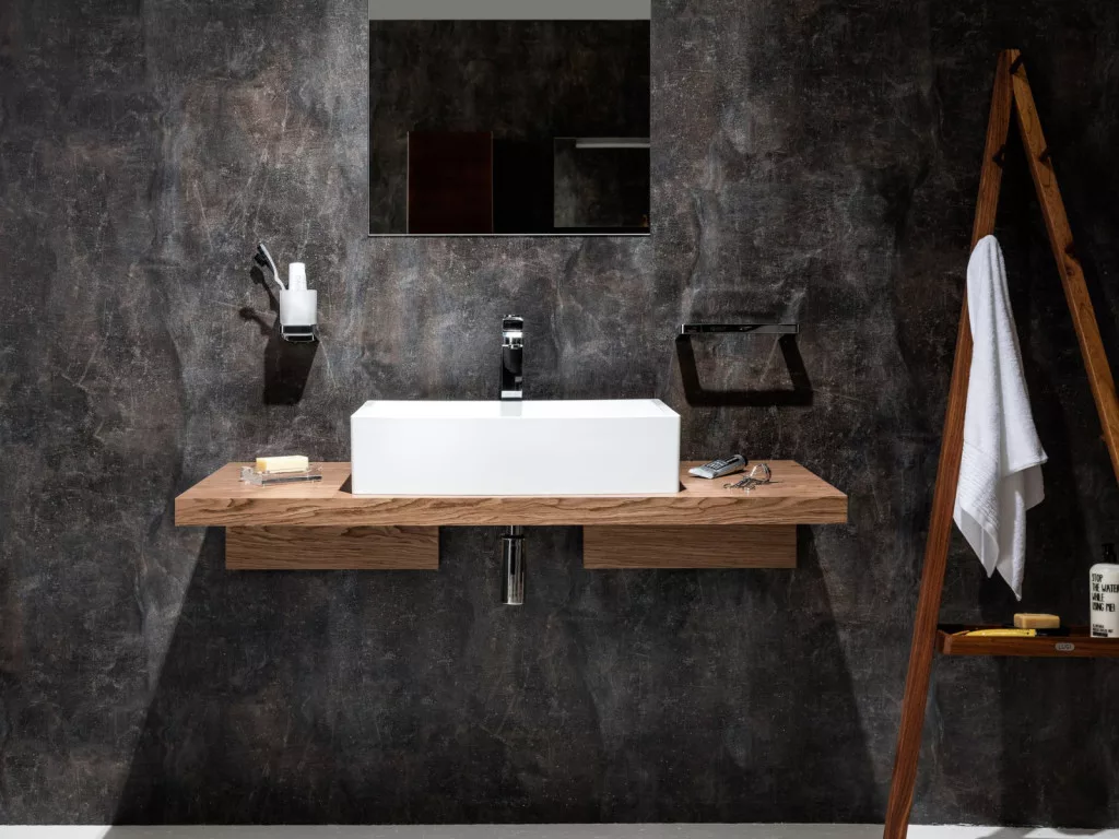 Az L pult a falra speciális, rejtett konzolok segítségével rögzíthető, amelyek a csomag részét képezik. Előfúrt nyílásokkal rendelkezik a Formy és Moon mosdók formájához igazodva.