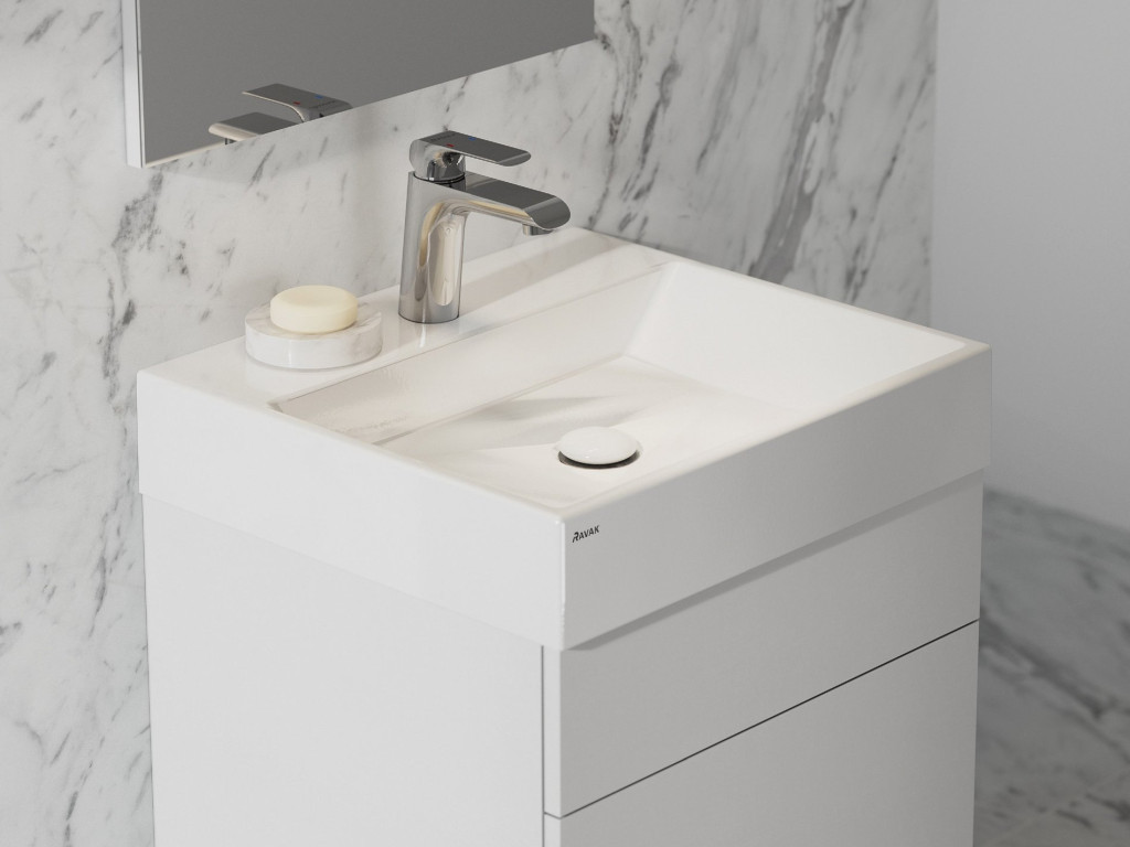 A Natural 50 mosdó nem rendelkezik túlfolyóval, ezért szükséges a mosdóhoz rögzített csaptelep és állványos csaptelep használata. A szerelési készlet (csatlakozó dübelek, csavarok, stb.) a szállítás részét képezi. A mosdó felszerelése közvetlenül a falra, vagy kombinációban a Natural 50 SD mosdó alatti szekrénnyel történik.