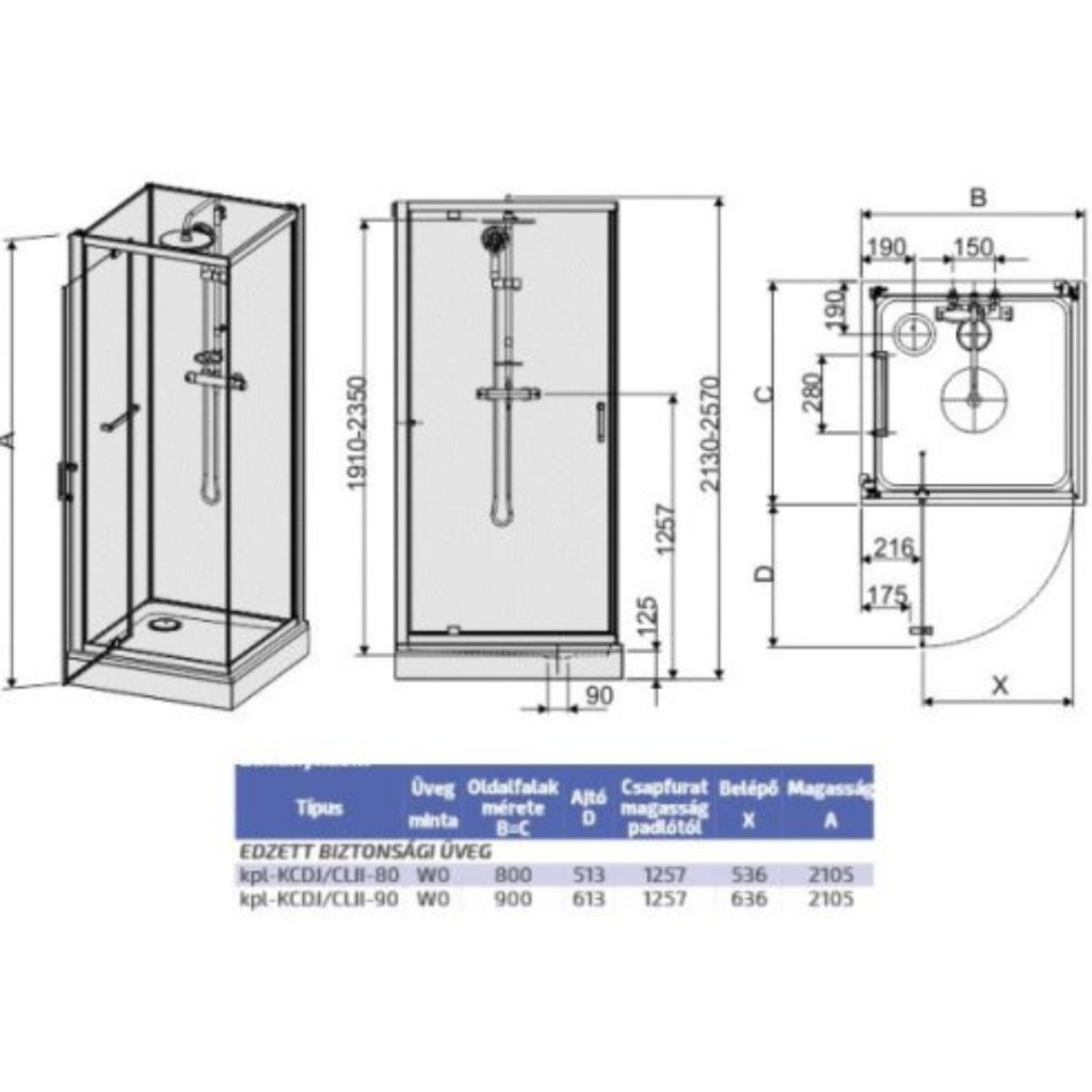 Négyoldalról zárt szögletes zuhanykabin szett kpl-KCDJ/ CLIIa-80 / króm kerettel és ezüst hátfallal /W18 üveggel