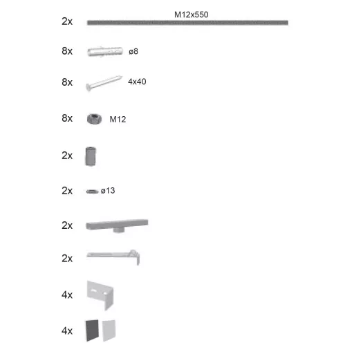 Készlet a NewDay és Gentiana 140 és 150 fürdőkádakhoz való akril burkoló panelek rögzítéséhez.