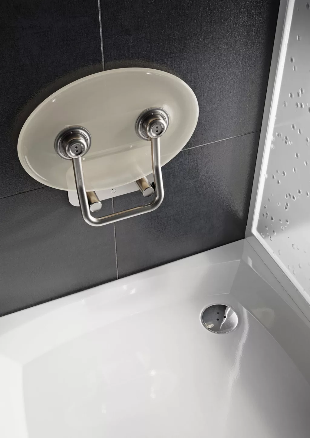Az Ovo P II ülőke 90x90 cm méretű zuhanyzókba való beépítésre alkalmas. A 150 kg teherbírást a szerelési útmutatóban leírtak betartása esetén garantáljuk.