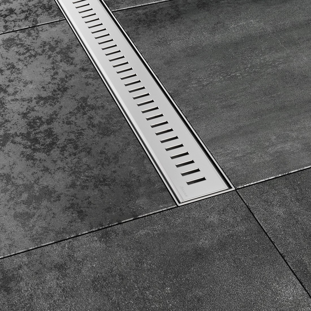 Akár 30 B/Jerc átfolyás lejtőcsatornával. A műanyag fokozott ellenállása a vegyszerekkel szemben. Alacsony szerkezeti magasság, 75 mm, burkolattal együtt, ami miatt ideális felújításokhoz.